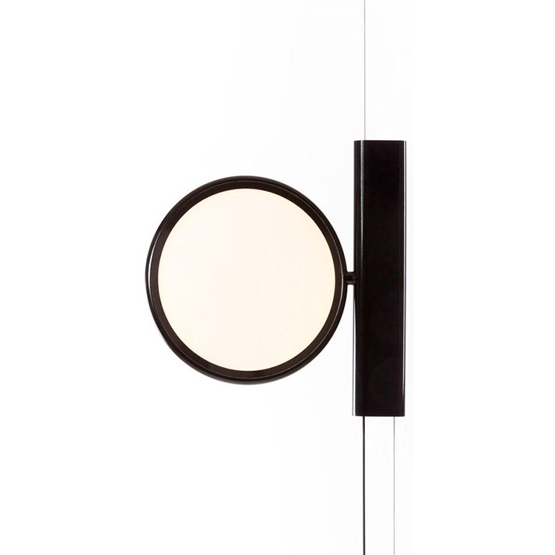 Lampara OK de iluminación con luz directa. Cabezal de aluminio fundido lacado lucido o cromado. Cuerpo de PA66+30%FV con estampado de inyección con tapa de aluminio extruido lacado lucido o cromado. Cabezal orientable. El movimiento vertical del cuerpo iluminador se obtiene deslizando la estructura interna del cuerpo sobre un cable de acero extendido entre el plafón y el suelo (longitud útil de 4.000 mm). Regulador de intensidad con tecnología "Soft Touch". Alimentador con enchufe de clavijas intercambiables.