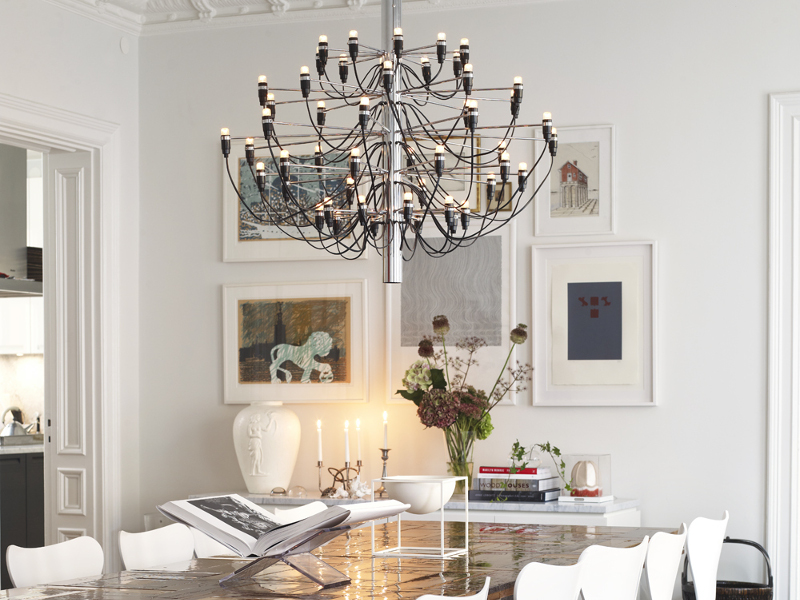 La lámpara de suspensión 2097, es una fantástica combinación de lo clásico y lo moderno, elegante y con un look inmortal. La que se puede considerar lámpara de araña para el siglo XXI, representa una perfecta armonía entre las formas tradicionales y el atractivo contemporáneo.
