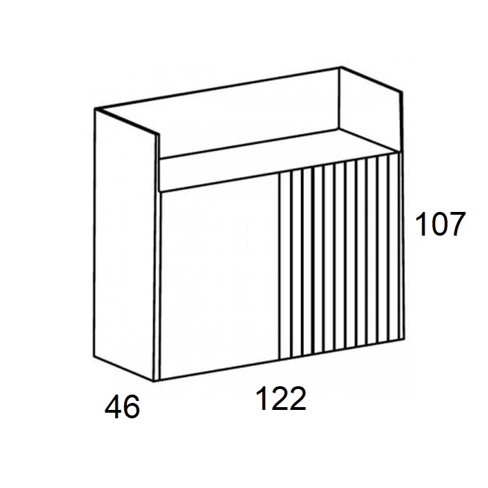Dimensiones: 122 largo x 46 ancho x 107 alto (medida para colgar)