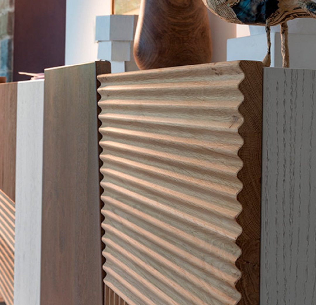 El aparador Zero.16 de Devina Nais corresponde a una colección joven y creativa, concebida de acuerdo con las nuevas tendencias de muebles del mercado, que presentan un intercambio entre diferentes espacios del hogar y una versatilidad altamente funcional. El aparador con proporciones armoniosas, se renueva con cortes asimétricos y líneas geométricas en los frentes con mucho colorido. Se nota la alternancia de puertas y cajones y la fabricación de roble tallado con diferente orientación de las líneas. Un mueble multifuncional, con proporciones sobrias, concebido para ser colocado en diferentes contextos y de estilo creativo.