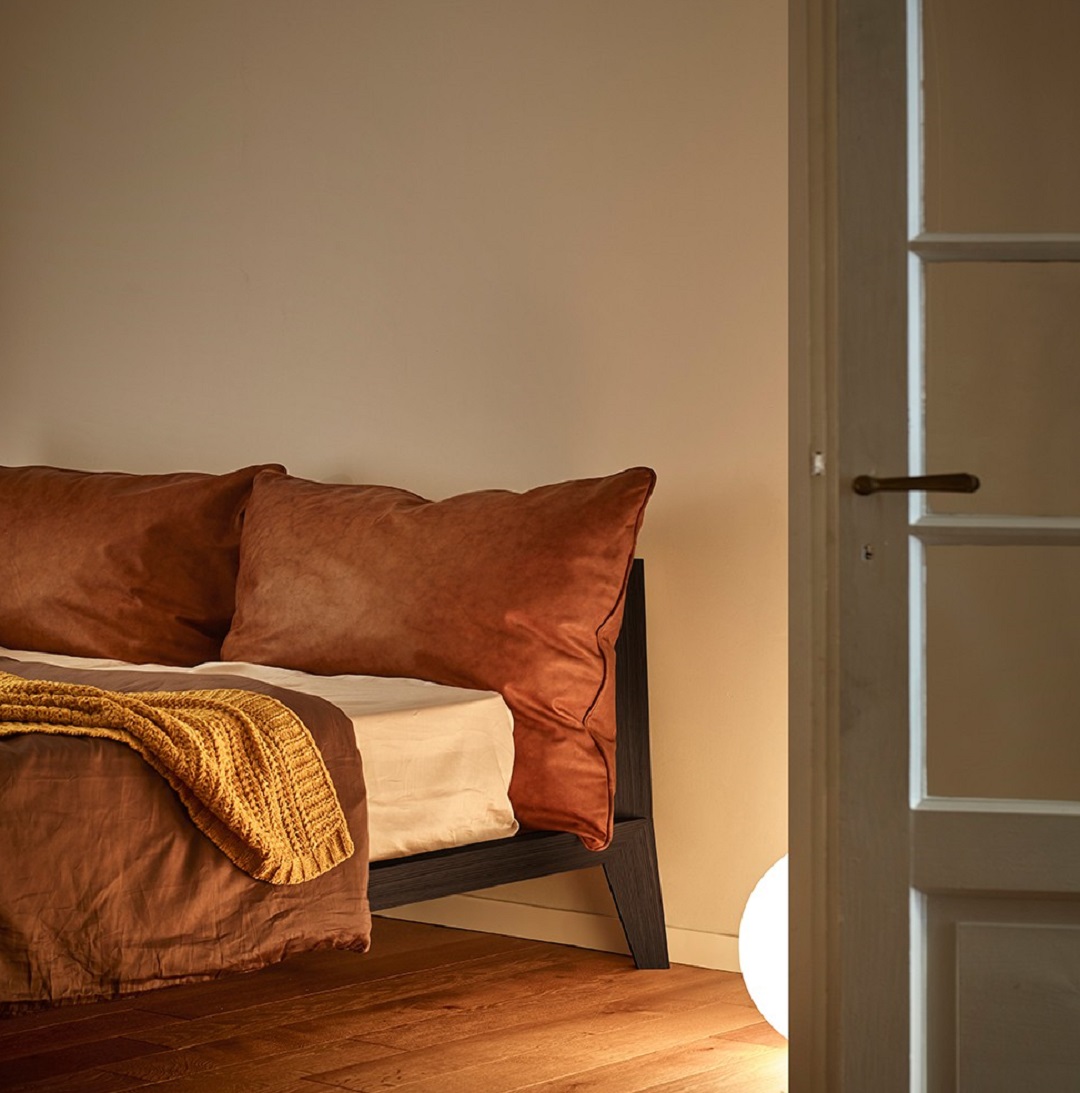 La cama Bora transmite confort por todas sus esquinas. Invita a echarte en ella y leer apoyado en sus mullidos cojines o descansar plácidamente dejándote llevar por los mejores sueños. Los cojines son desenfundables y con opciones de diferentes telas y pieles. Para la estructura se pueden elegir cualquiera de las maderas de la oferta de Treku.