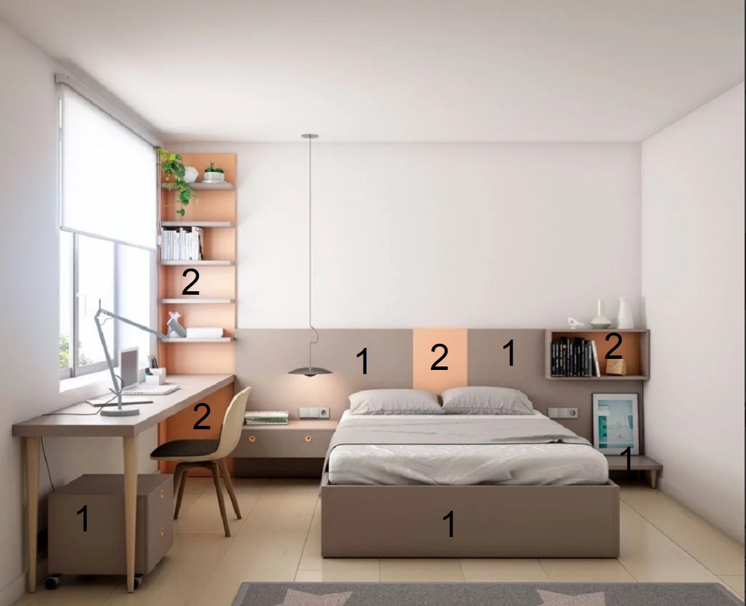 El dormitorio composición 4, es un dormitorio espectacular que en Hogar Domèstic La Sénia nos encanta incorporar a muchos proyectos de decoración, para juvenil o de invitados o cualquier proyecto para networking. Su estilo transformara su espacio en un ambiente elegante y vanguardista.