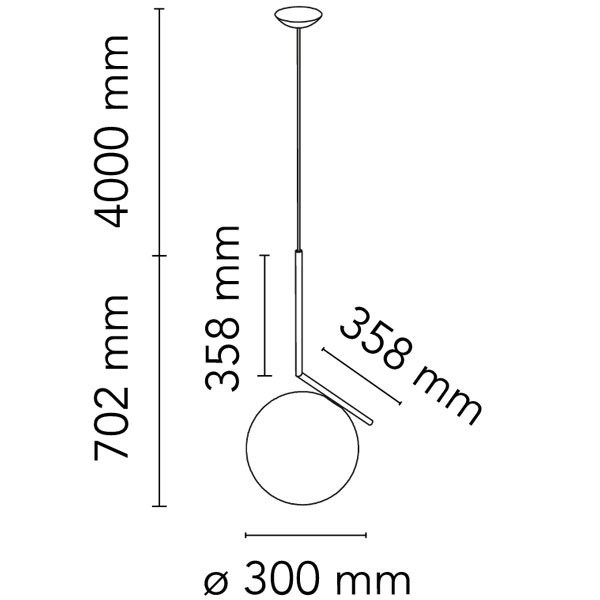 Lampara IC de suspensión de iluminación suspendido con luz difusa. Estructura de latón, cepillado y lacado transparente o acero cromado. Difusor opalino de vidrio soplado.