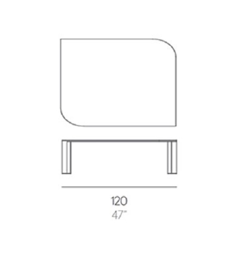 Mesa baja Solanas de exterior de estructura en perfiles de aluminio soldado termolacado y sobre en Dekton® del diseñador Daniel Germani.