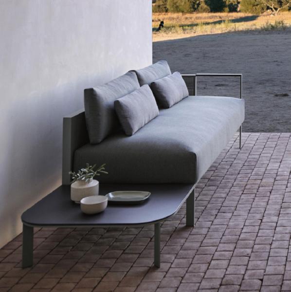 Mesa auxiliar Solanas de exterior de estructura en perfiles de aluminio soldado termolacado y sobre en Dekton® del diseñador Daniel Germani.