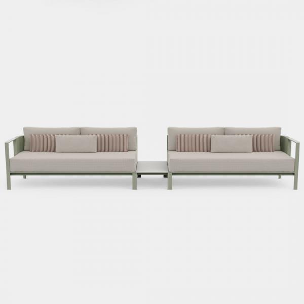 Solanas es una mesa auxiliar de diseño fabricada con perfilería de aluminio soldado a mano termolacado y sobre en Dekton® by Cosentino, que puedes personalizar con distintos colores y acabados. SOLANAS es la colección de mobiliario de exterior más orgánica de GANDIABLASCO, basada en la sencillez de las formas, la resistencia y la comodidad. Las piezas modulares de SOLANAS, son concebidas para adaptarse a las necesidades de cada situación, invitan a acomodarnos en ellas para disfrutar esos momentos de placer compartido, texturas que emulan lo mejor de la naturaleza.