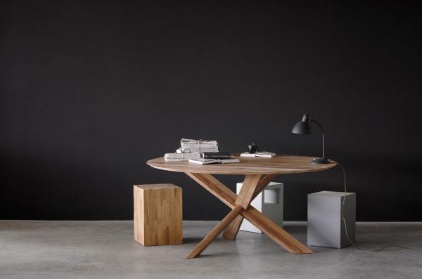 Mesa Circle fija redonda fabricada de madera maciza de Roble Disponible en dos medidas 163 Ø y 136 Ø. Diseñada por Alain Van Havre para Ethnicraft.