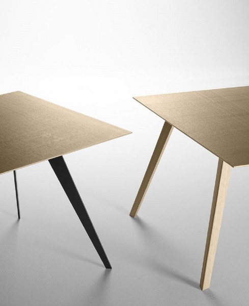 Aise es un sistema de mesas que se caracteriza por su ligereza visual y sólida construcción. Un elemento importante en su diseño es el grosor de la encimera, que visualmente apenas alcanza el medio centímetro. Las patas y bastidores pueden fabricarse en metal (blanco/negro) o madera (nogal/roble). La versión Aise con pies de madera puede ser extensible.