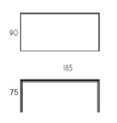 Mesa de comedor Line con estructura de acero de una sola pieza. Para calcular la distancia entre patas hay que descontar 6 cm a lo largo y 6 cm a lo ancho de la medida seleccionada.