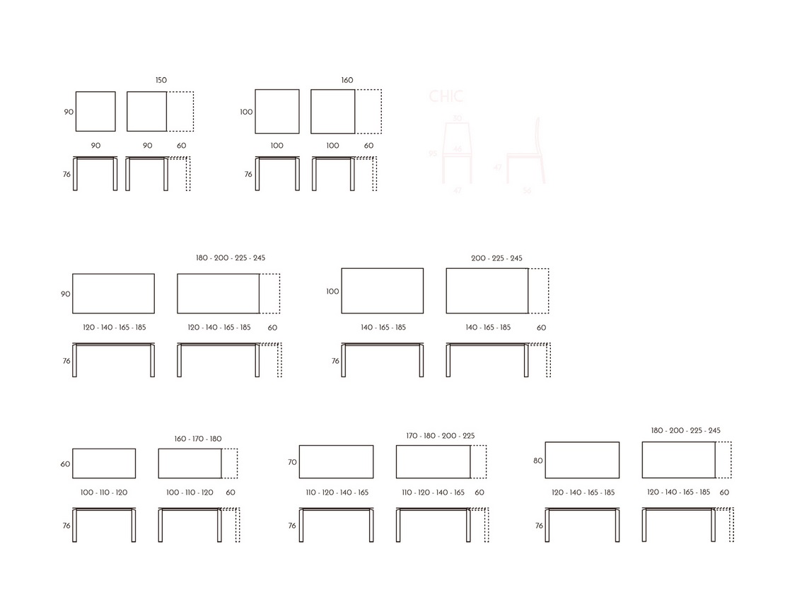 Nota: Posibilidad de lacar la estructura en cualquier color de las cartas RAL o NCS. o en acabado cerámica G3: Dekton: grupos 1 y 2. Neolith: series Colorfeel, Iron y Fusión con pedido mínimo de 2,5 m2 . Mercancía fuera de stock. Plazo de entrega 30 días superior al resto de acabados; y para otros acabados de medidas de la mesa en cuadrado fija o extensible o doble extensible, consultar al 977 57 60 22 o a info@hogardomestic.com
