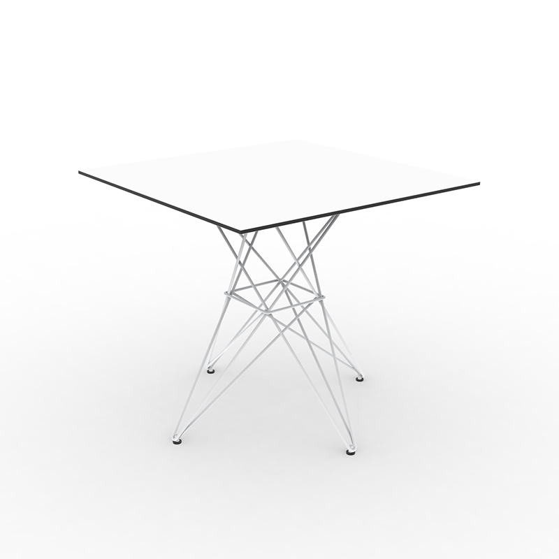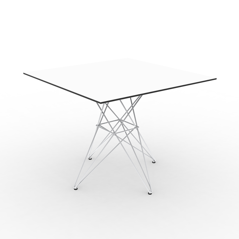 Mesa Faz Cuadrada Inox con patas de acero inoxidable pintado a juego con el tablero . El tablero está disponible en HPL y Full White (solo blanco), del diseñador Ramon Esteve. Varias medidas a elegir.