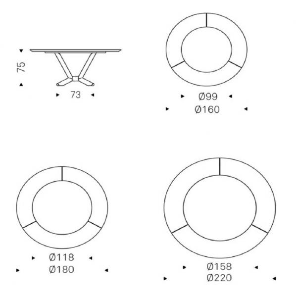 Mesa con base en acero barnizado gofrado titanio (GFM11), bronce (GFM18), graphite (GFM69) o negro (GFM73), Brushed Bronze o Brushed Grey. Sobre en madera nogal Canaletto (NC) o roble ahumado (RB) con detalle en cerámica Marmi colores Alabastro (KM02), Supreme (KM03), Ardesia (KM04), Golden Calacatta mate (KM05), Golden Calacatta brillo (KM06), Portoro mate (KM07), Portoro brillo (KM08), Sahara Noir brillo (KM09), Emperador (KM10), Makalu (KM11), Breccia (KM12) o Arenal (KM13). Detalle en cromo negro (06).
