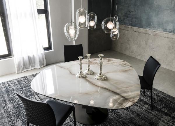 Mesa fija Skyline Round con base de acero y sobre de cerámica. Diseñada por Brogliato & Traverso para Cattelan Italia.