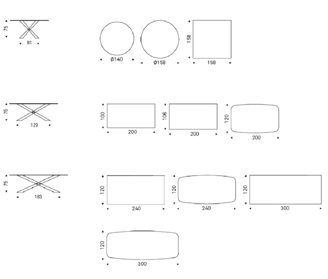 Mesa con base en acero barnizado negro (OP17), graphite (OP69), blanco (OP71) mate, acero inox brillo, bronce satinado (15), titanio satinado (11), nogal Canaletto (NC), dark wenghè (W2) o roble Heritage (HR). Sobre en apoyo en cerámica colores Alabastro (KM02), Supreme (KM03), Ardesia (KM04), Golden Calacatta mate (KM05), Golden Calacatta brillo (KM06), Portoro mate (KM07), Portoro brillo (KM08), Sahara Noir brillo (KM09), Emperador (KM10), Makalu (KM11), Breccia (KM12) o Arenal (KM13). Pequeñas irregularidades de reflexión en la base de acero inox, o pequeñas sombras en la base de titanio y bronce satinados son detalles de la producción manual. Opcional bandeja sobremesa giratoria Lazy Susan.