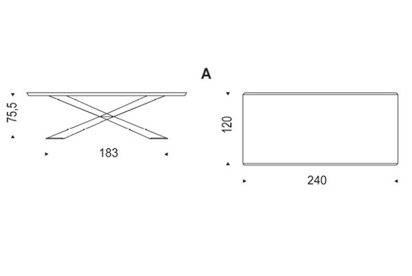 Mesa con base en acero barnizado negro (OP17), graphite (OP69), blanco (OP71) mate, acero inox brillo, bronce satinado (15), titanio satinado (11), nogal Canaletto (NC), dark wenghè (W2) o roble Heritage (HR). Versión S con cantos irregulares de madera maciza en nogal Canaletto (NC), roble ahumado (RB) o roble natural (RN) grosor 4 cm. Pequeñas irregularidades de reflexión en la base de acero inox, o pequeñas sombras en la base de titanio y bronce satinados son detalles de la producción manual. Versión "A": sobre en nogal Canaletto (NC), roble Heritage (HR), roble ahumado (RB) o roble natural (RN) con bordes oblicuos. Sobre 200x100 con grosor 4 cm, sobre medidas 240x120 y 300x120 grosor 5 cm.