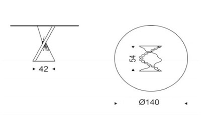 Mesa con base en marmól Palissandro (BPO). Sobre en cristal 15mm transparente o transparente extraclaro.