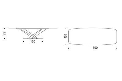 Mesa con base en acero barnizado gofrado titanio (GFM11), bronce (GFM18), graphite (GFM69) o negro (GFM73). Sobre en cerámica Marmi colores Alabastro (KM02), Supreme (KM03), Ardesia (KM04), Golden Calacatta mate (KM05), Golden Calacatta brillo (KM06), Portoro mate (KM07), Portoro brillo (KM08), Sahara Noir brillo (KM09), Emperador (KM10), Makalu (KM11), Breccia (KM12) o Arenal (KM13). Sobre en apoyo.