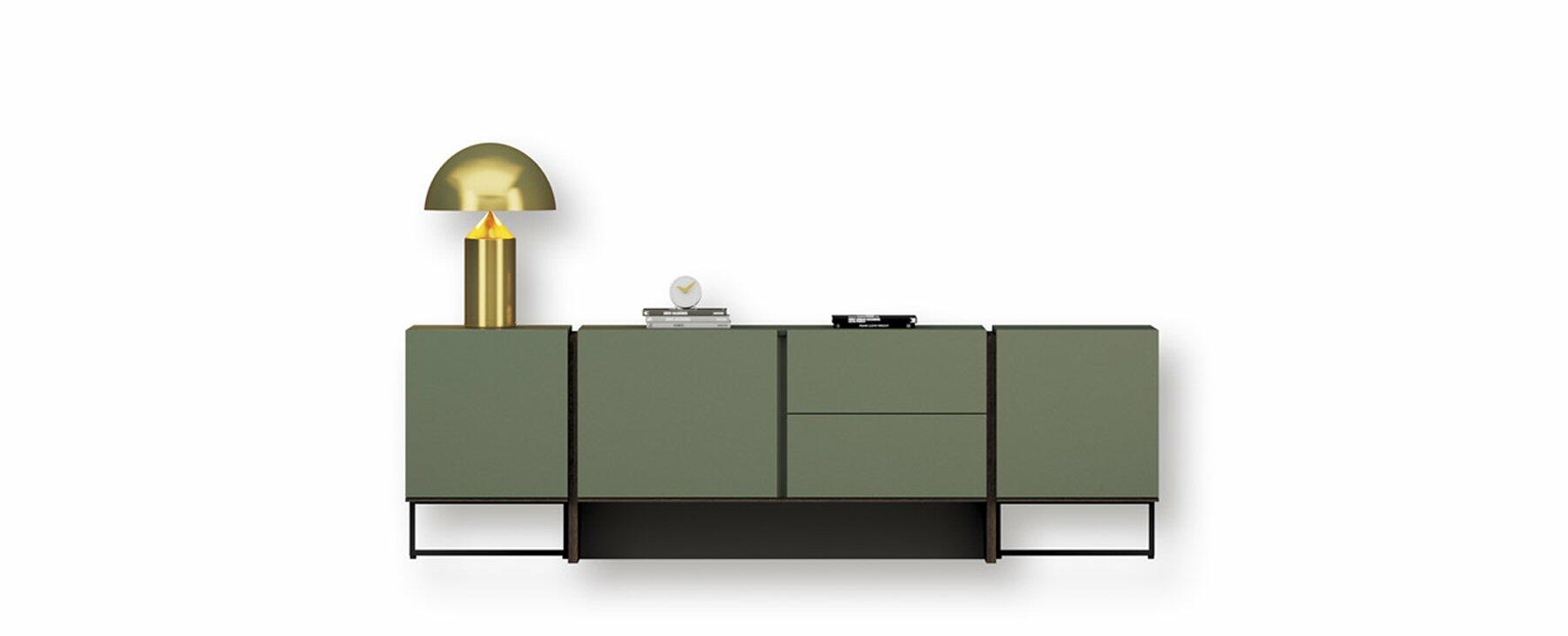 Los herrajes utilizados permiten nivelar las composiciones con precisión y garantizan una excelente funcionalidad en cajones y puertas. Además, existe la opción de colgar los aparadores en la pared, una solución innovadora dentro de este tipo de mobiliario.