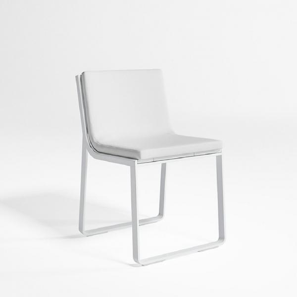 Sillas Flat de exterior de Polietileno 100% reciclable y estructura de aluminio soldado termolacado del diseñador Mario Ruiz. Colchoneta para exterior, con tapicería desenfundable y funda protectora opcional. Dimensiones: 50x56x45h cm.