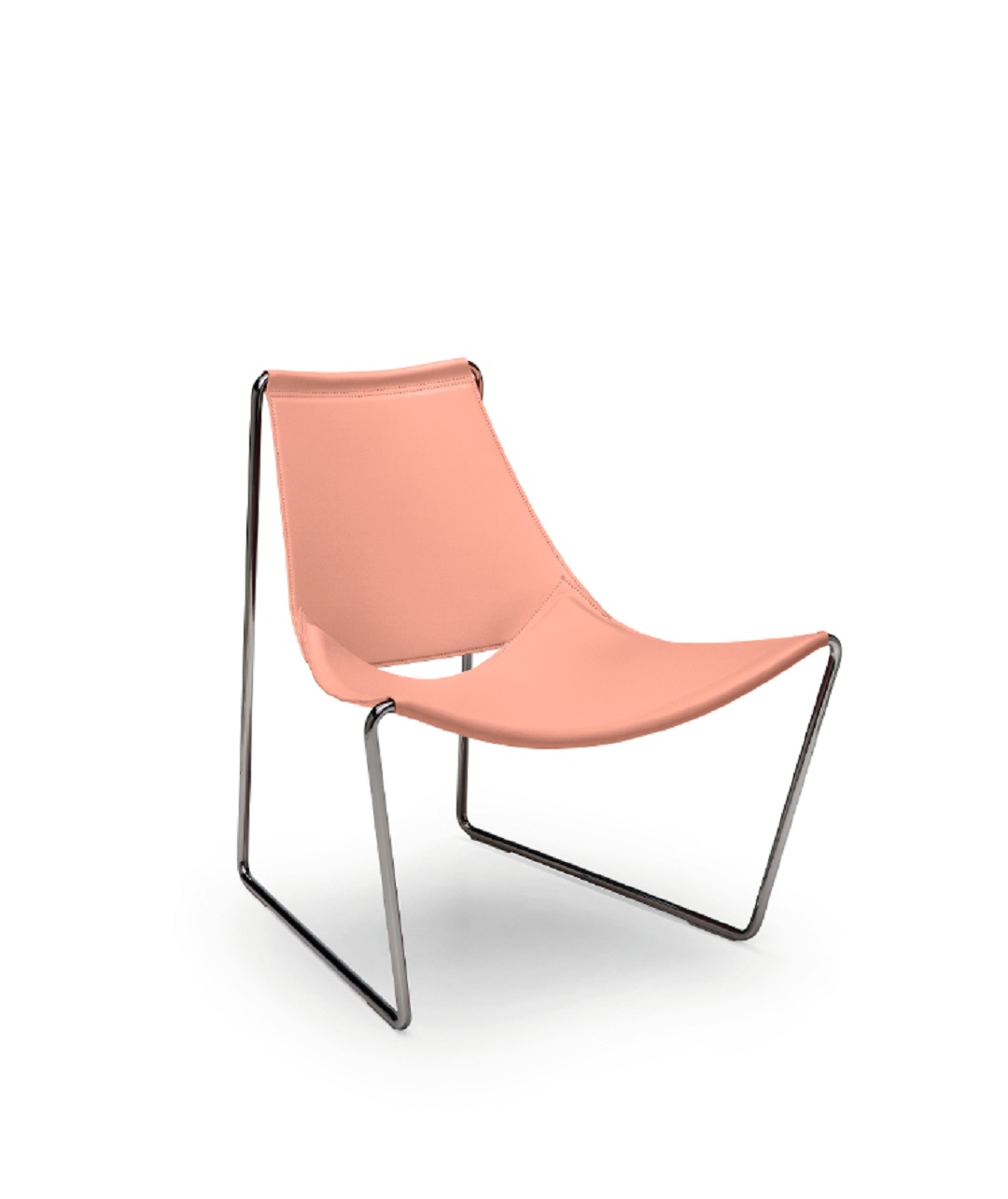 Sillón Apelle AT M CU con estructura de metal y asiento y respaldo de cuero o cuero toscana de 82x79x73 cm. La estructura está disponible en acero cromado o pintado en diversos colores a elegir.