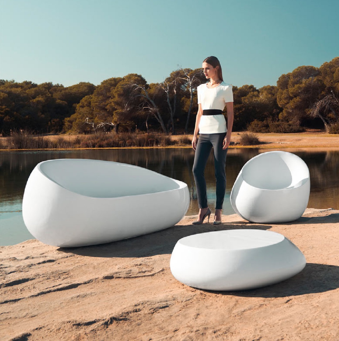 Sofá Stone fabricado con resina de polietileno mediante moldeo rotacional con doble pared. 100% Reciclable. Disponible en varios colores a elegir. Apto para uso interior y exterior. Su propio nombre lo indica, Stones; pretende integrarse como un elemento que podemos encontrar en la naturaleza, creándose una sinergia entre el paisaje natural y el artificial. El material, así como la forma que adquiere permite que se integre a la perfección en cualquier entorno y transmitir algo que lo caracteriza; la elegancia.