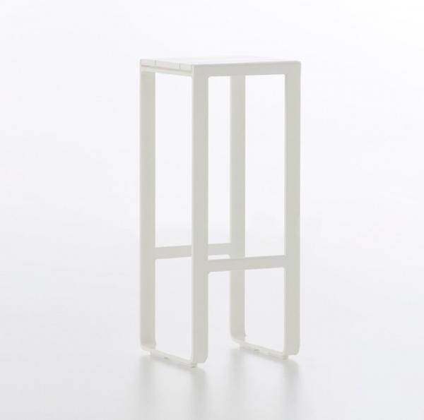El taburete Flat se adapta a tus necesidades. Es un taburete de exterior fabricado con perfilería de aluminio soldado termolacado y polietileno 100% reciclable.